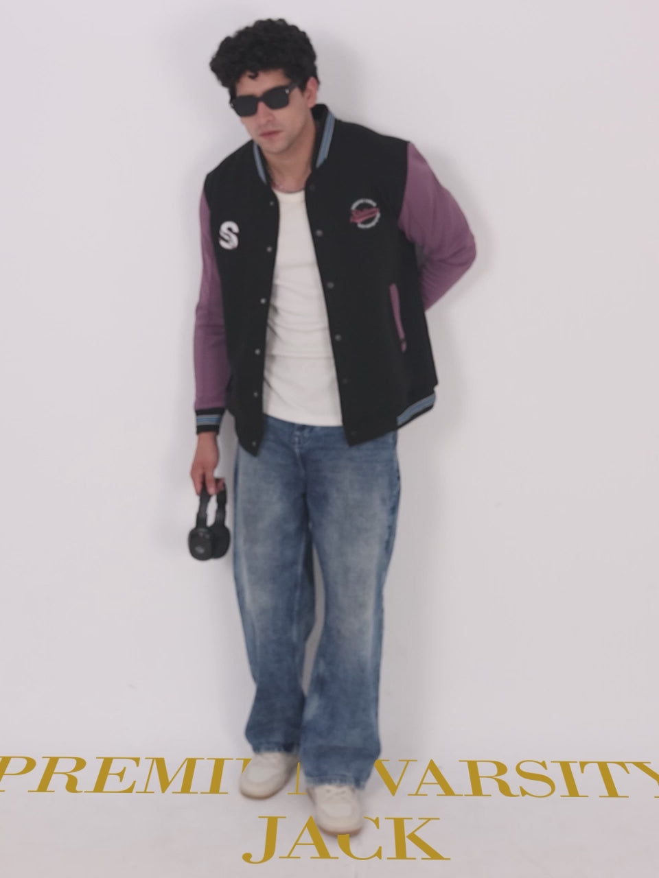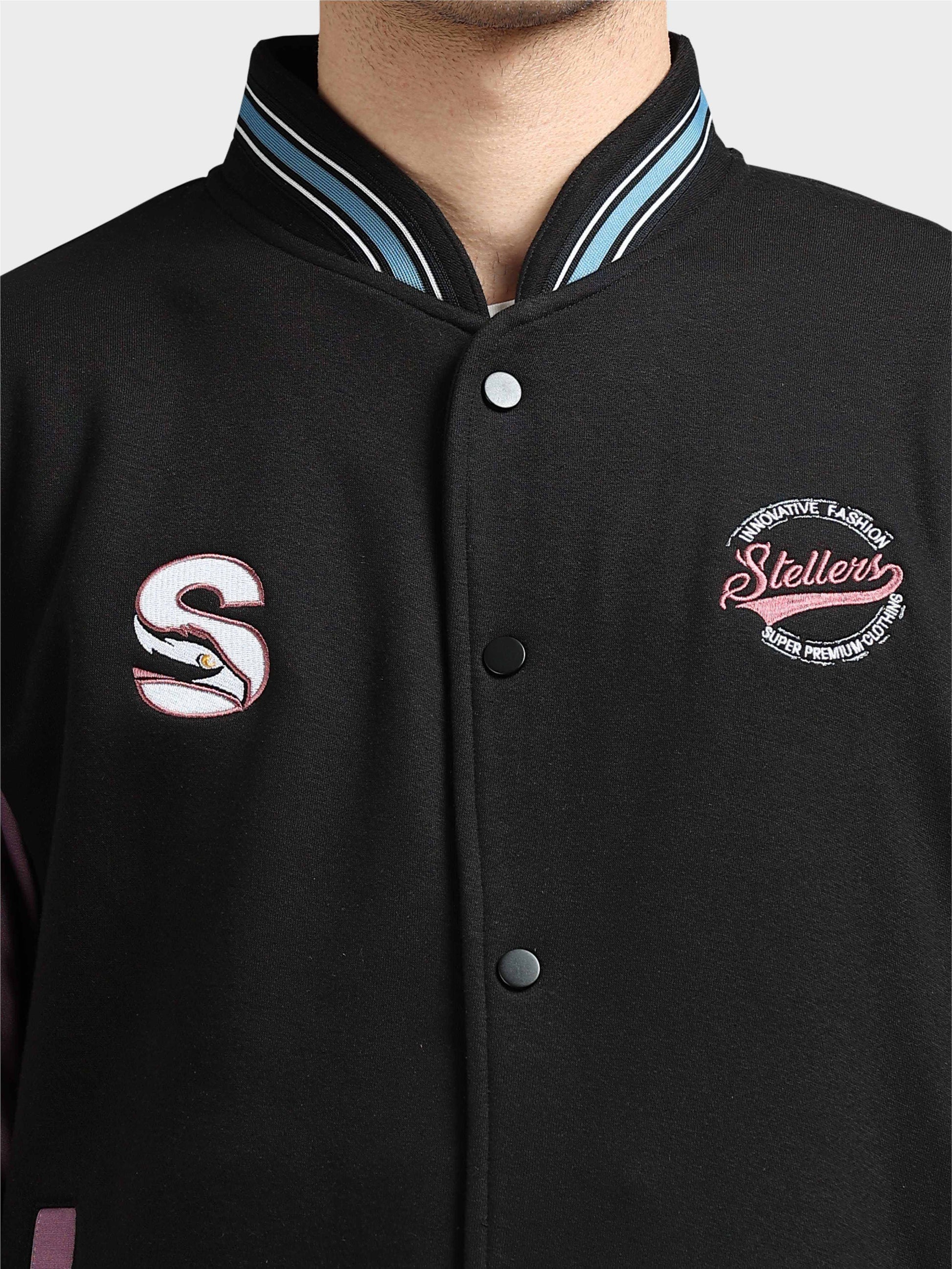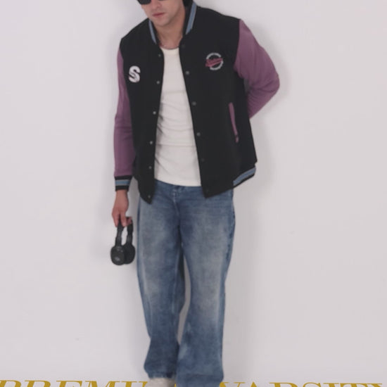 Men Varsity Jacket Black & Purple | Regular Fit | Feather Touch Feel | Warm |