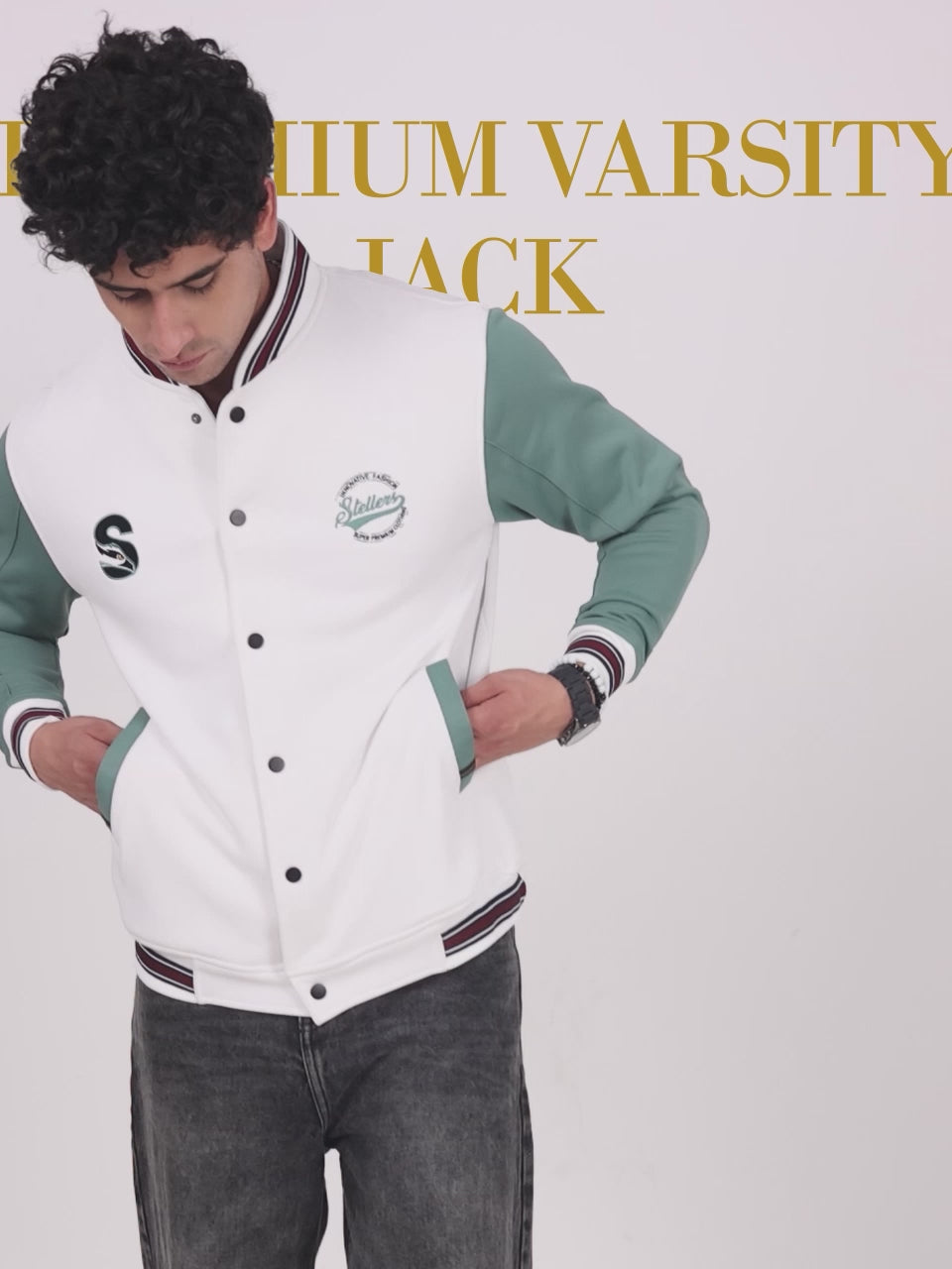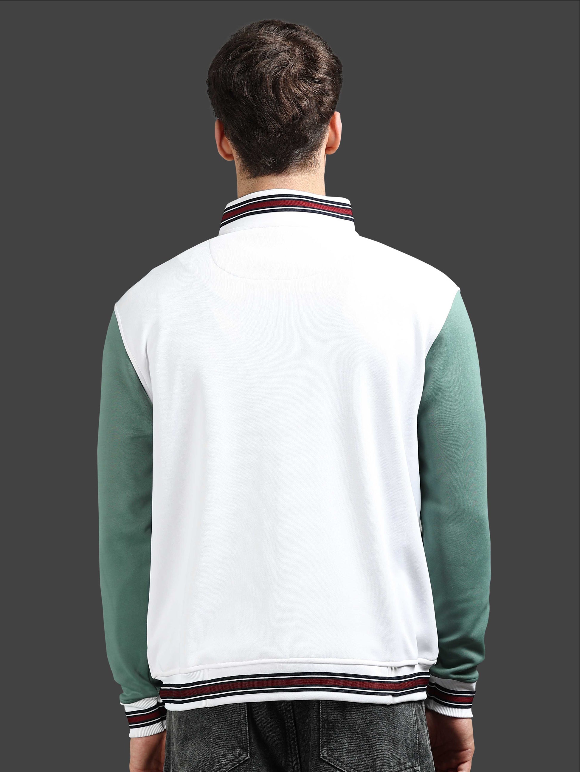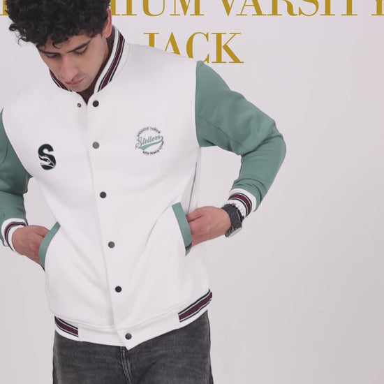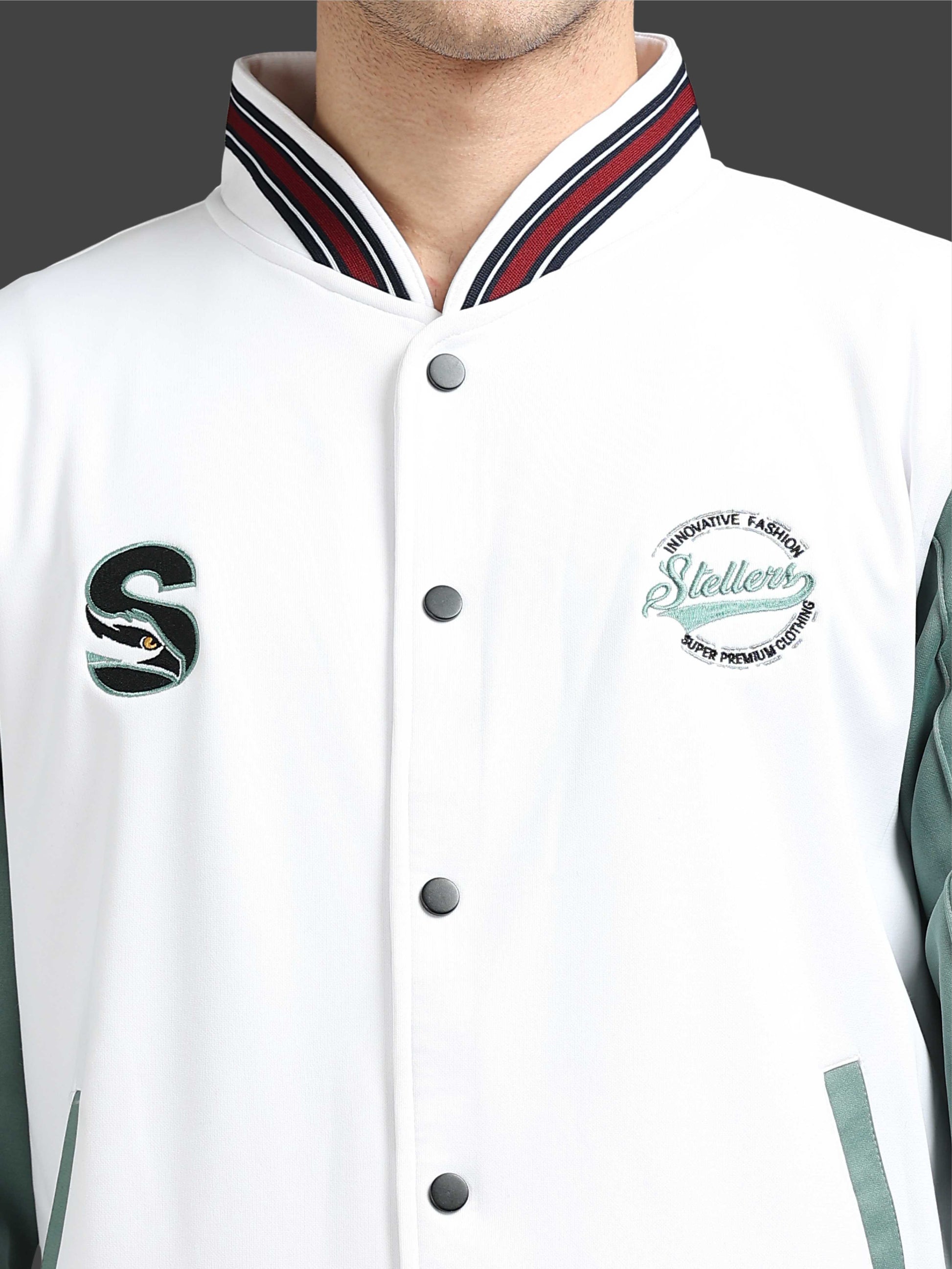 Men Varsity Jacket White & Green | Regular Fit | Feather Touch Feel | Warm |