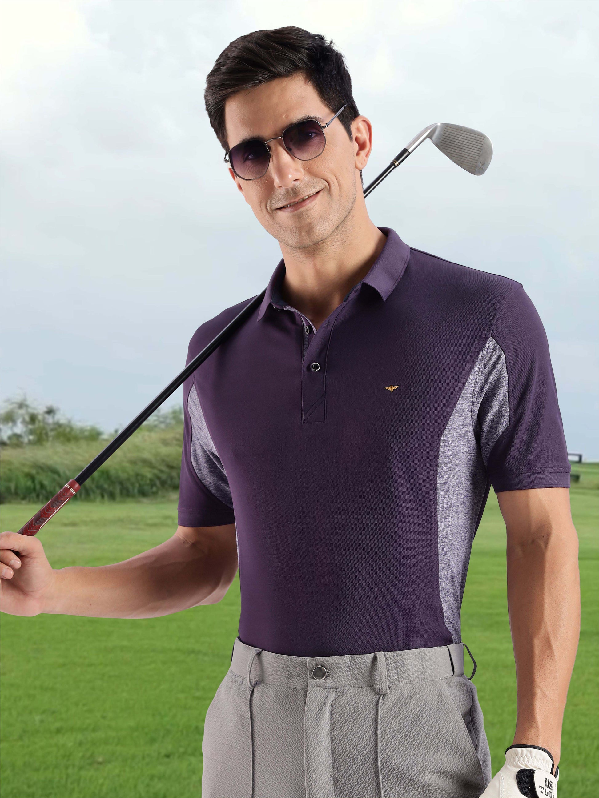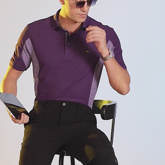Men's Black Currant Color Block Polo T-Shirt | Wrinkle-Free | Quick Dry | Stretchable | Odour-Free | UV Protected