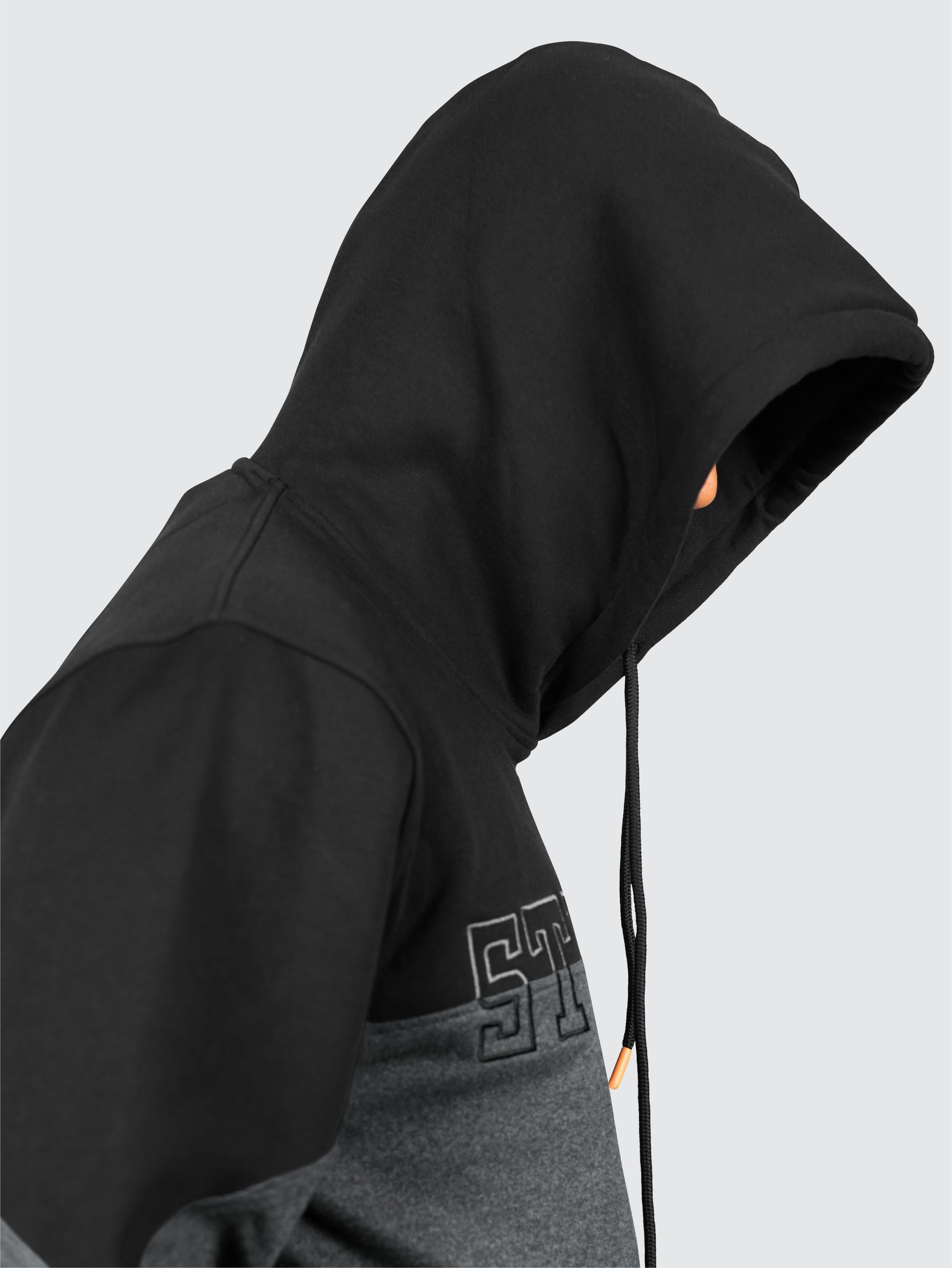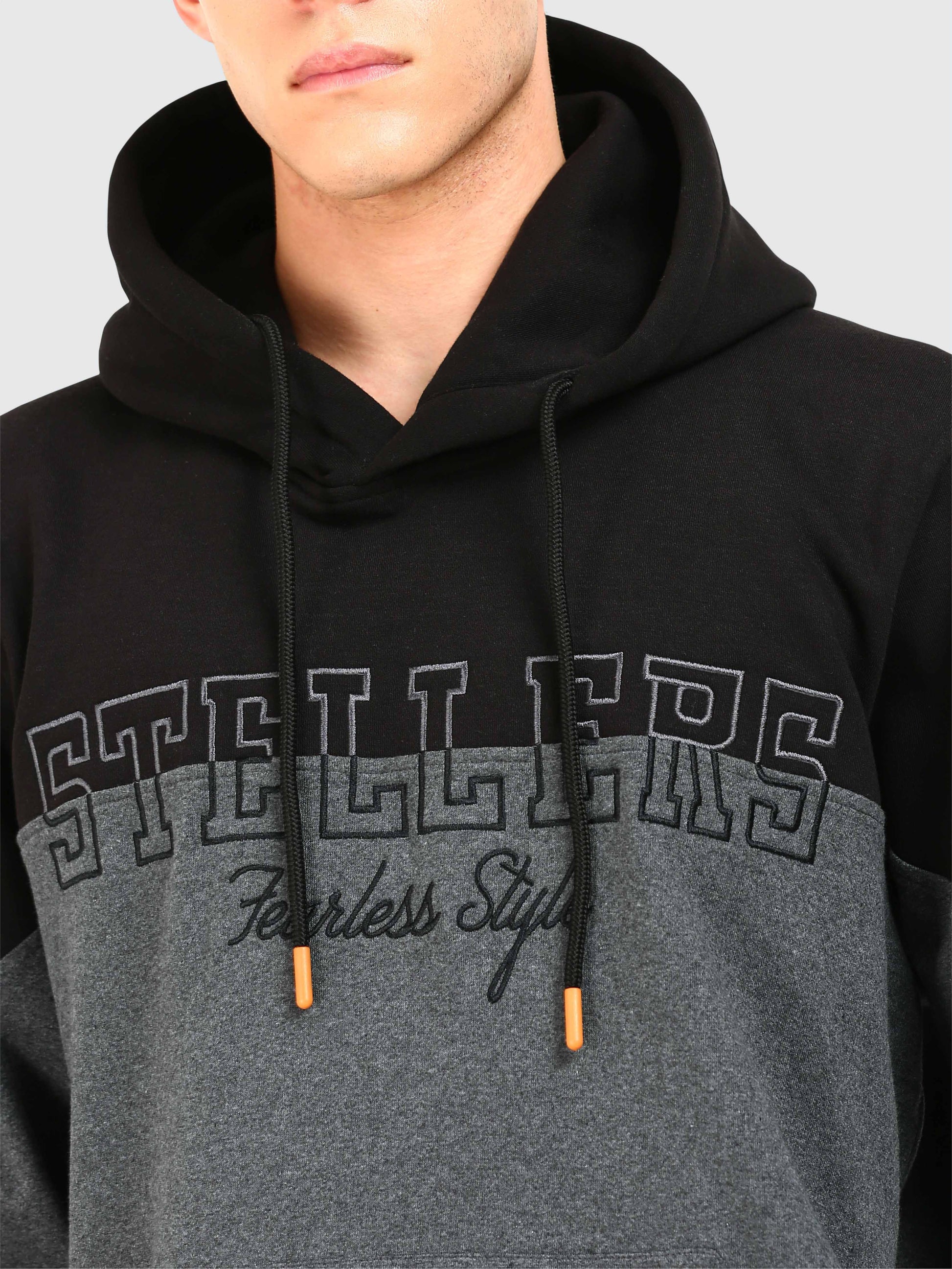 - Elevate your casual look with the STELLERS Hoodie, designed for those who live with confidence and attitude. Crafted from a premium cotton-blend fabric, this hoodie delivers a perfect balance of comfort, warmth, and durability. The design features a two-tone color block in deep black and charcoal grey, creating a modern, athletic vibe. The bold "STELLERS" varsity-style embroidery across the chest, paired with the “Fearless Style” tagline, adds a distinctive streetwear edge.A soft brushed inner lining ensures superior comfort, while the adjustable drawstring hood and ribbed cuffs and hem provide a snug fit. The kangaroo pocket adds both function and style, making it ideal for layering during cool weather or weekend outings.Whether you’re heading out for a casual day, hitting the gym, or relaxing in style, this hoodie is your go-to for effortless comfort and a fearless statement.