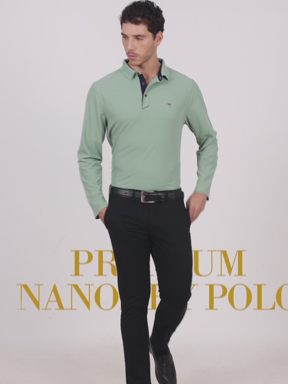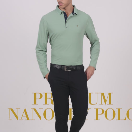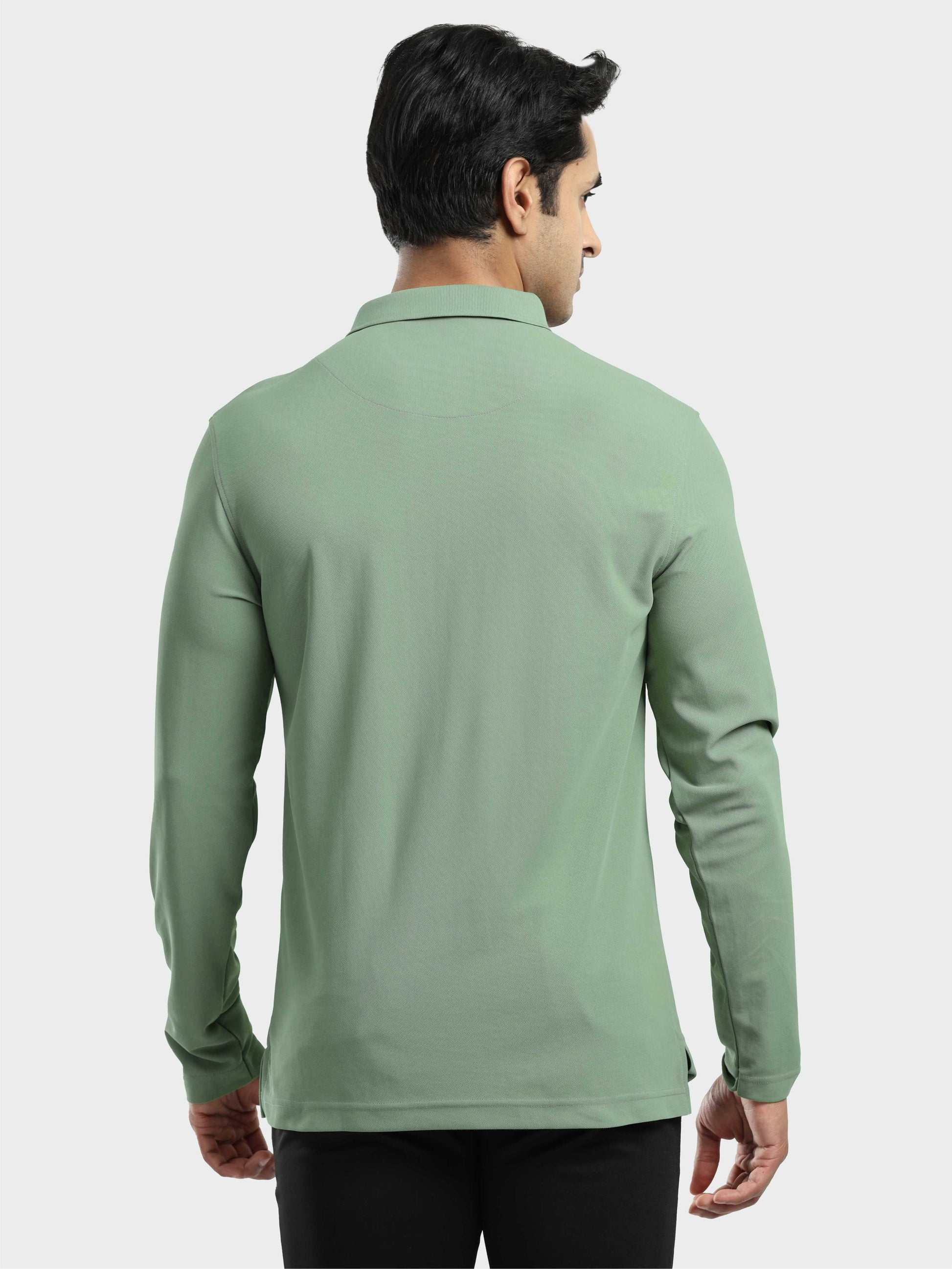 Men's Full Sleeve Polo T-Shirt - Misty Green | Feather Touch Feel | Odour Resistant | Wrinkle Free | Quick Dry | Stretchable | Anti-Static | UV Resistance |