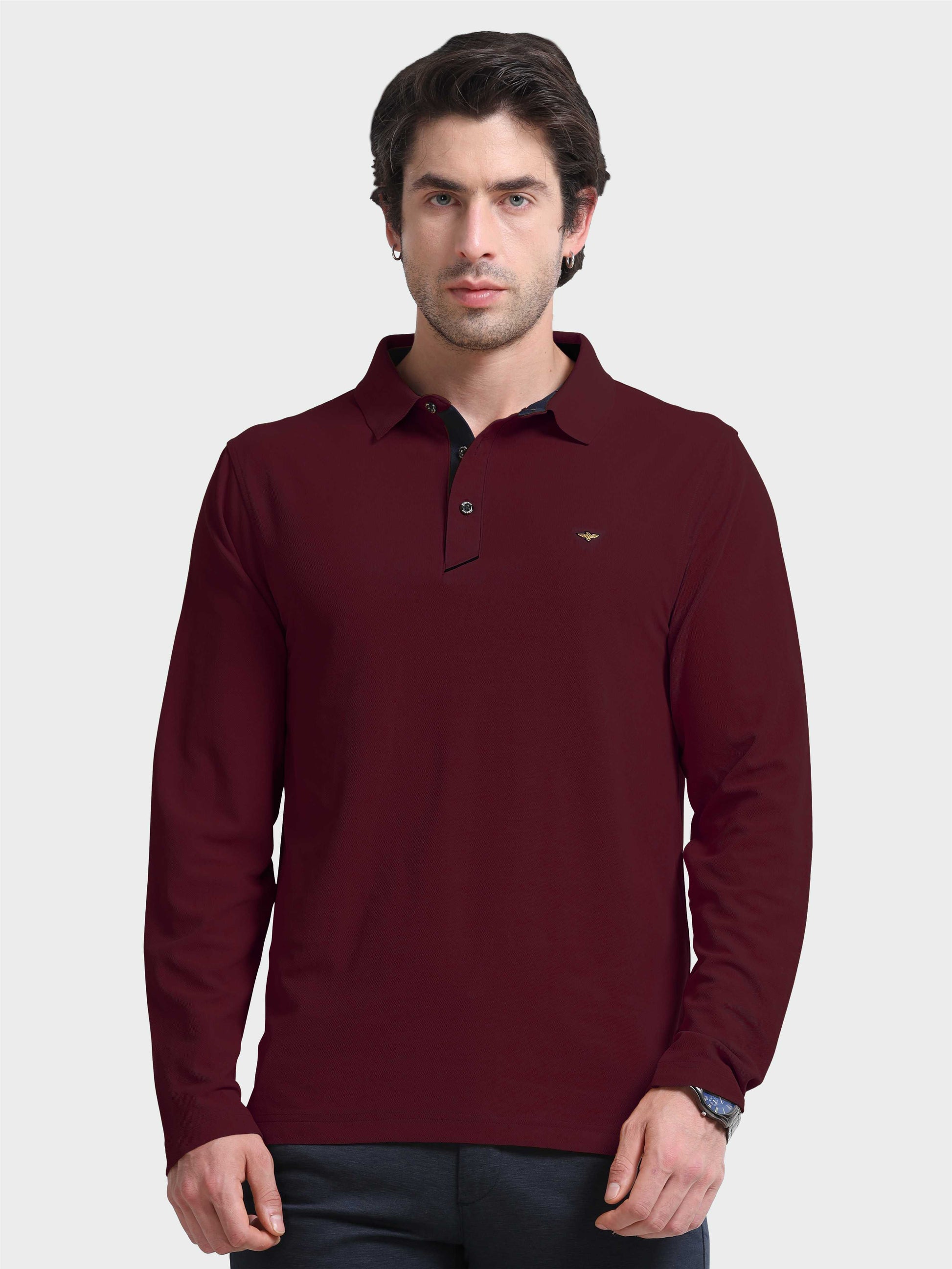 Men's Full Sleeve Polo T-Shirt - Maroon | Feather Touch Feel | Odour Resistant | Wrinkle Free | Quick Dry | Stretchable | Anti-Static | UV Resistance |