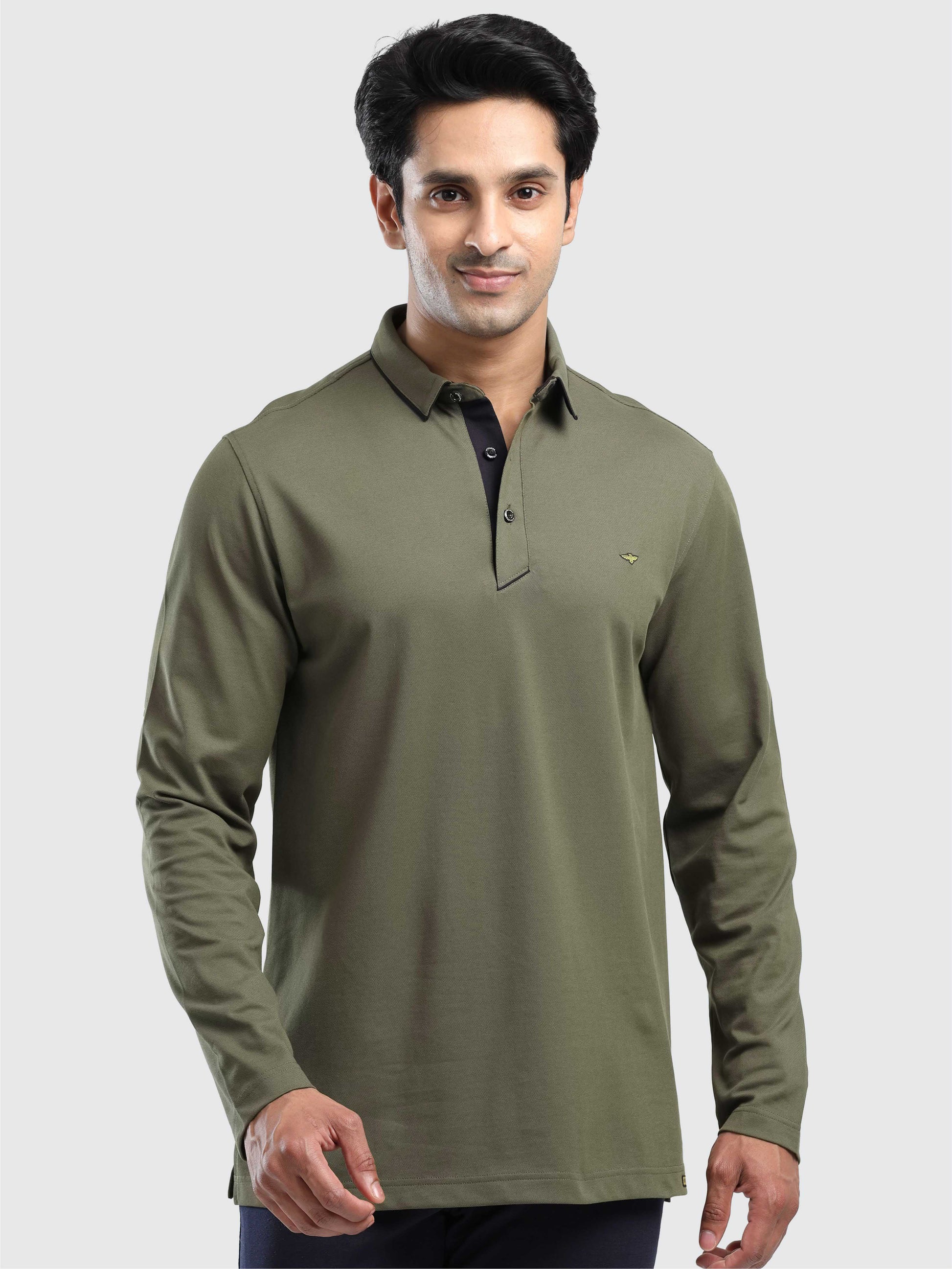 Men's Full Sleeve Soft Berry PQ Polo T-Shirt- Olive Green