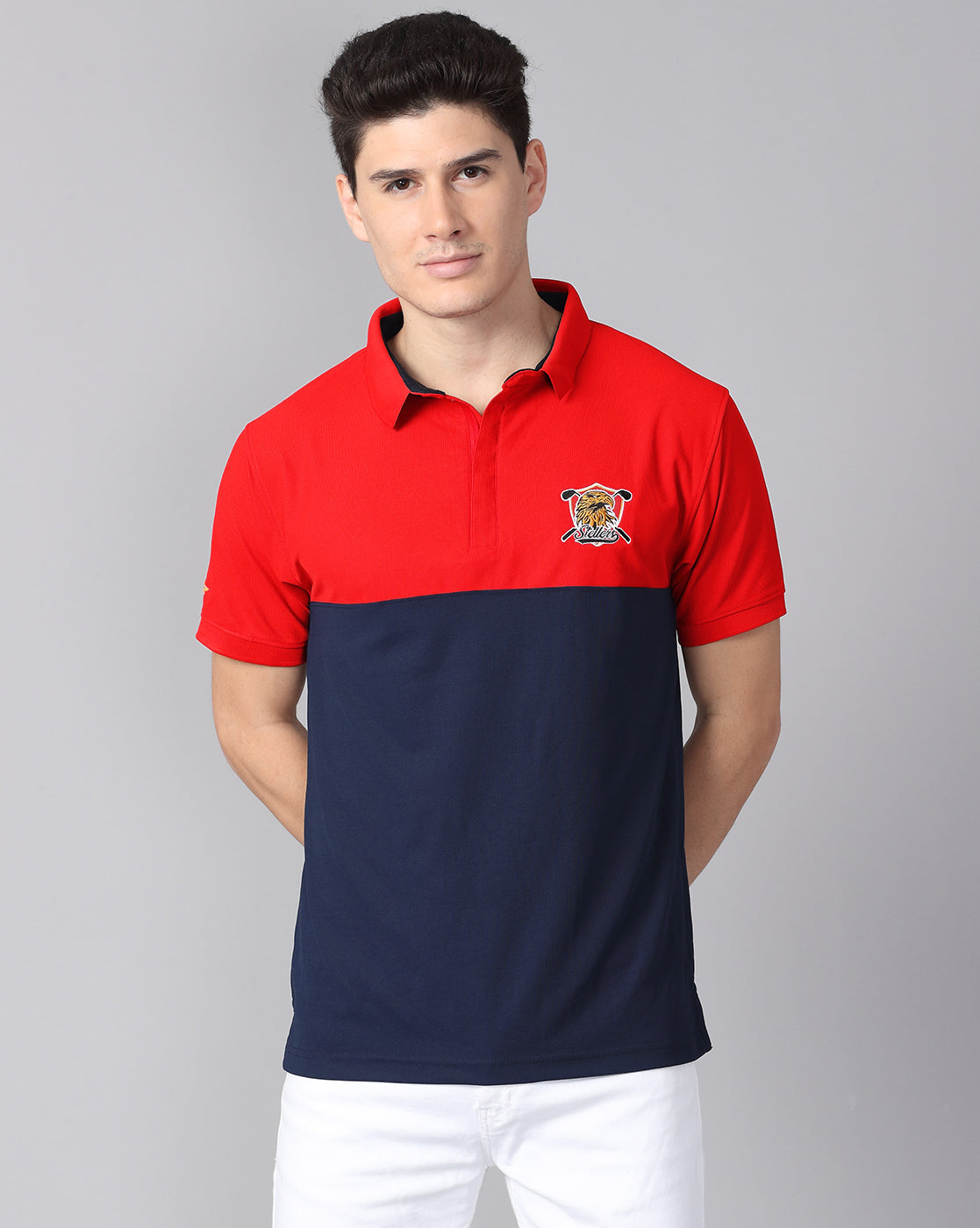 Red-Navy Men's Half & Half Polo T-Shirt | Quick Dry | Stretchable | UV Protected | Wrinkle & Odour-Free