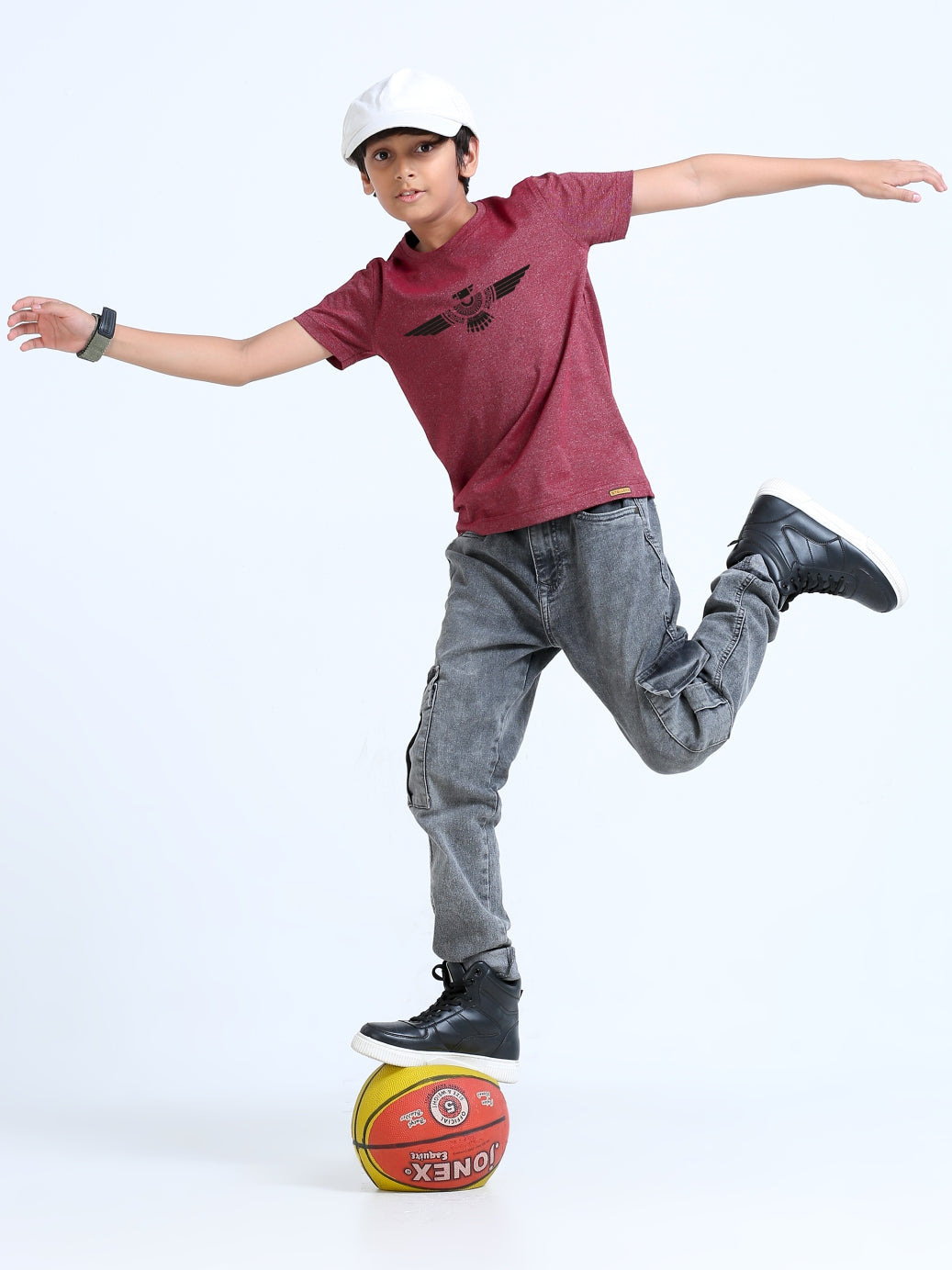 Maroon Crew Neck T-Shirt - Cherokee Cotton