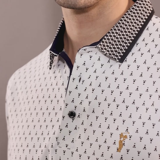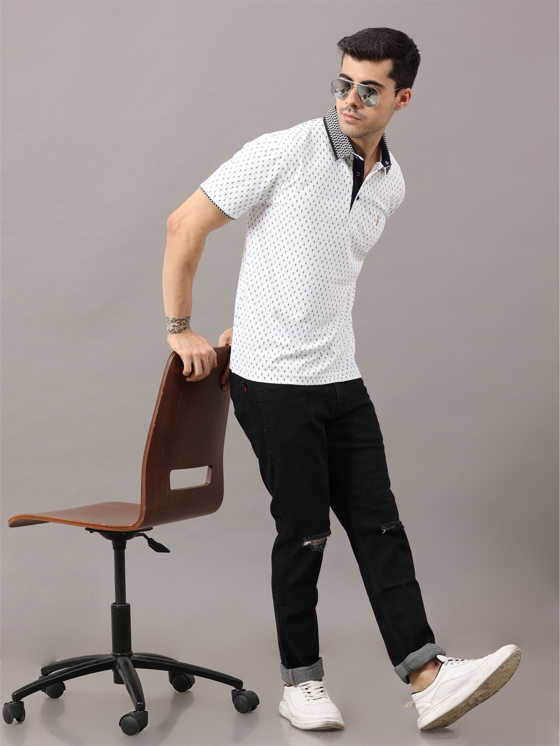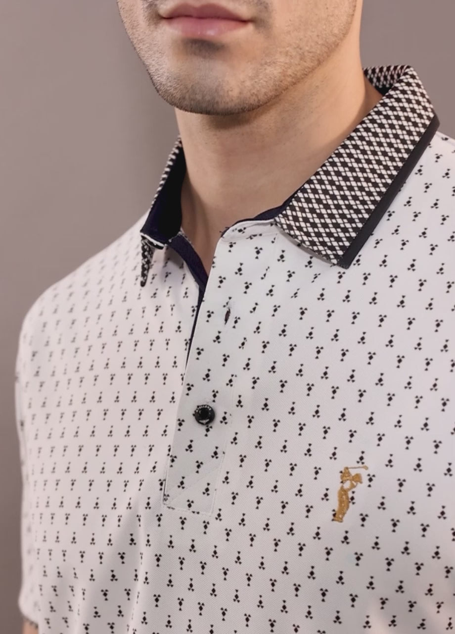 White Men's Ant Print Golf Polo T-Shirt | Quick Dry | Stretchable | UV Protected | Wrinkle & Odour-Free