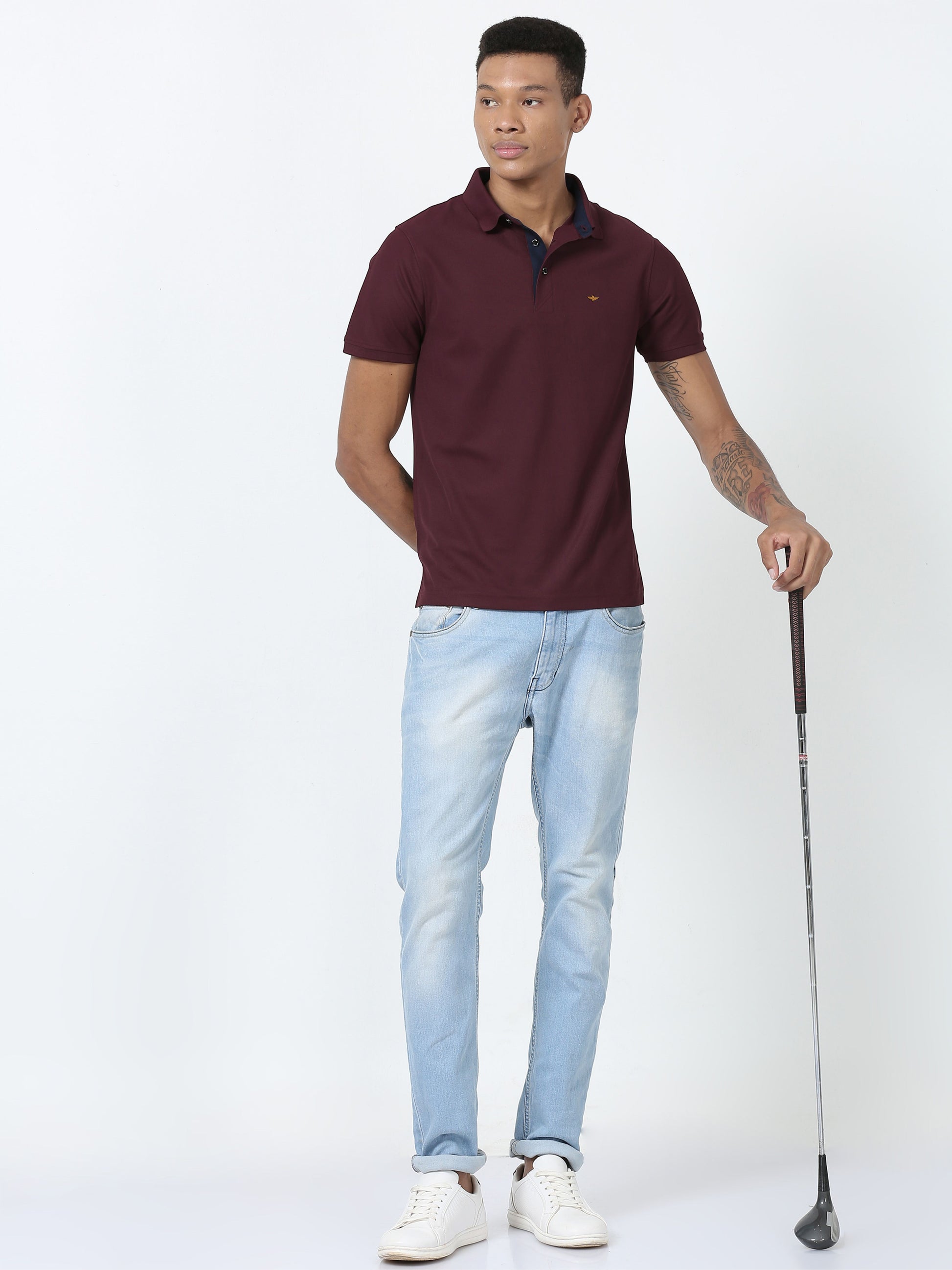 Men Wine Premium Polo T-Shirt | Quick Dry | Stretchable | UV Protected | Wrinkle & Odour-Free