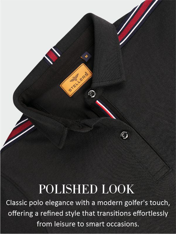 - Stellers Premium Cotton solid-color Polo T-shirt with the golfer logo embroidery