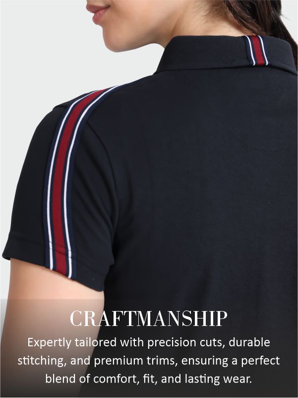 Women Black Regular Fit Polo T-shirt | Premium Cotton | Stretchable | Feather touch feel | Sustainable | Breathable | Light Weight