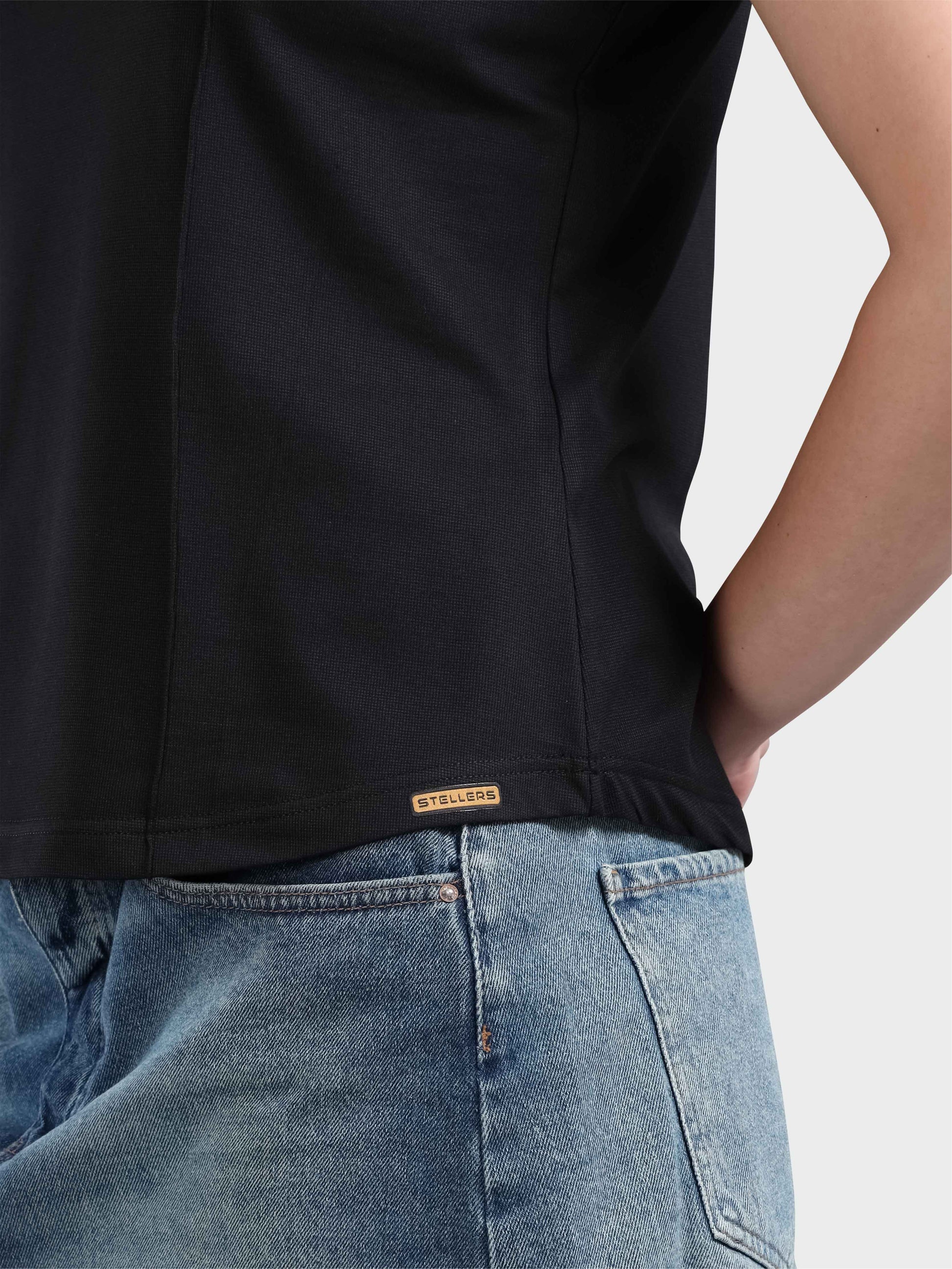 This stellers women’s T-shirt showcases a sleek, modern silhouette with curved seam lines that create a slim, functional shape. Crafted from Spiumo Cotton a premium blend of fine cotton, Cream of polyester, and spandex which offers exceptional stretch, feather-soft comfort, and outstanding breathability. The structured crew neckline, short sleeves, and subtle branding add a touch of refined, elegant styling, making it ideal for both active and casual wear. Designed for all-day comfort, it combines moisture-wicking performance with quiet sophistication in every movement. Pair it effortlessly with high-waisted leggings, tailored joggers, or relaxed denim for a versatile and elevated everyday look.
